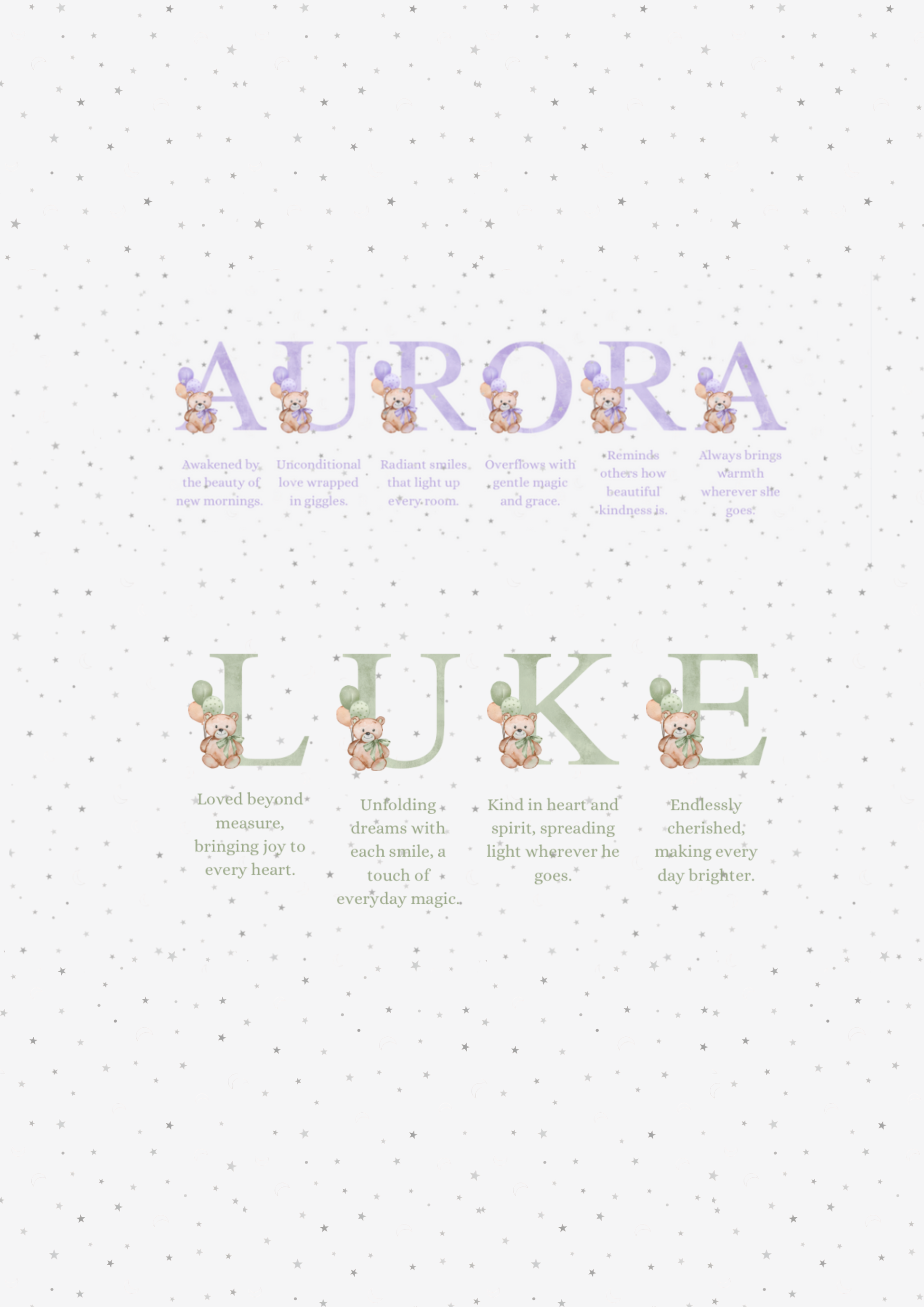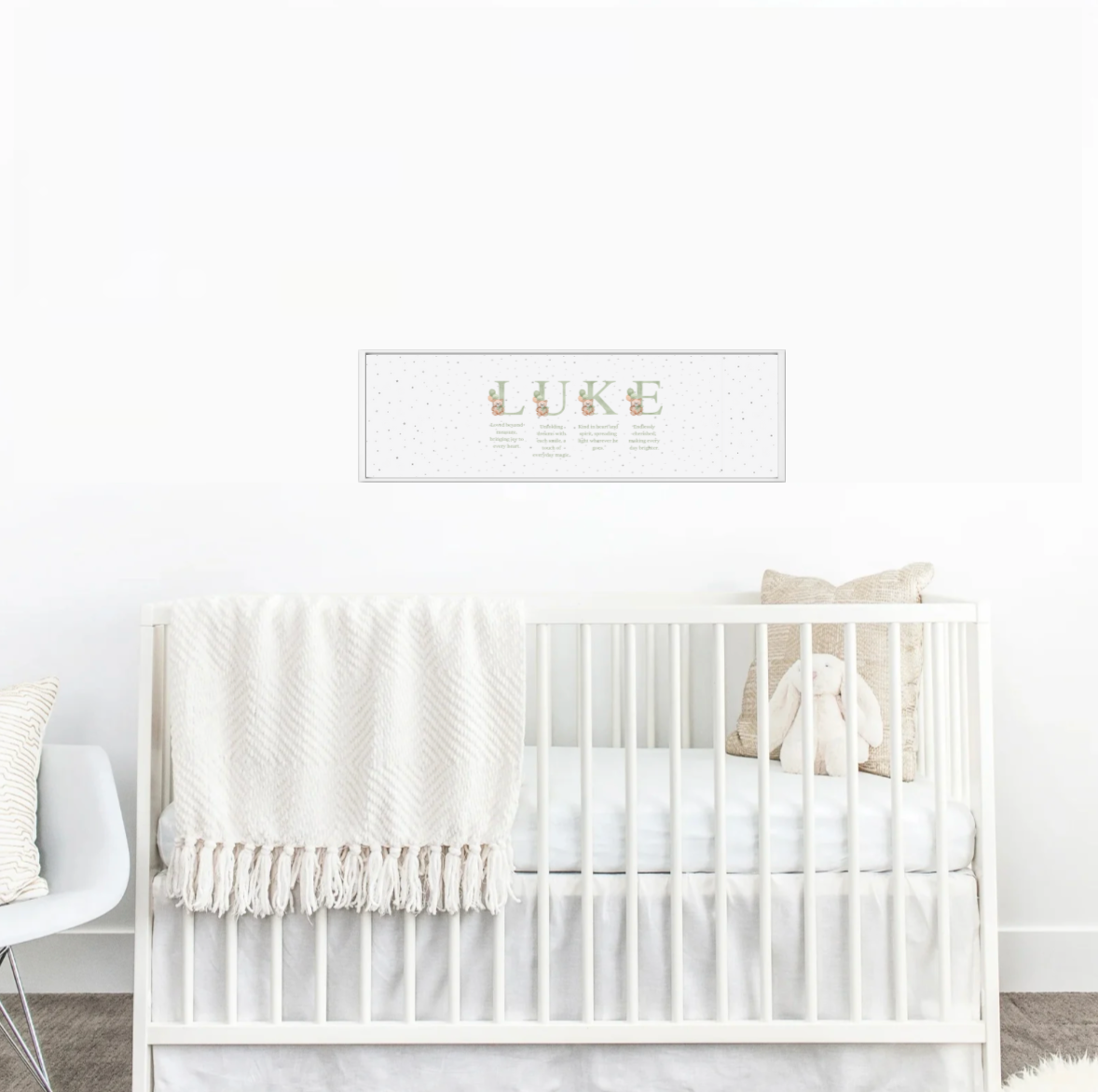 Introducing our Little Letters of Love print — a timeless keepsake that celebrates your child’s name in the most meaningful way. Each letter of their name is paired with a beautiful word or sentiment, creating a unique acronym that tells their story with warmth and love.