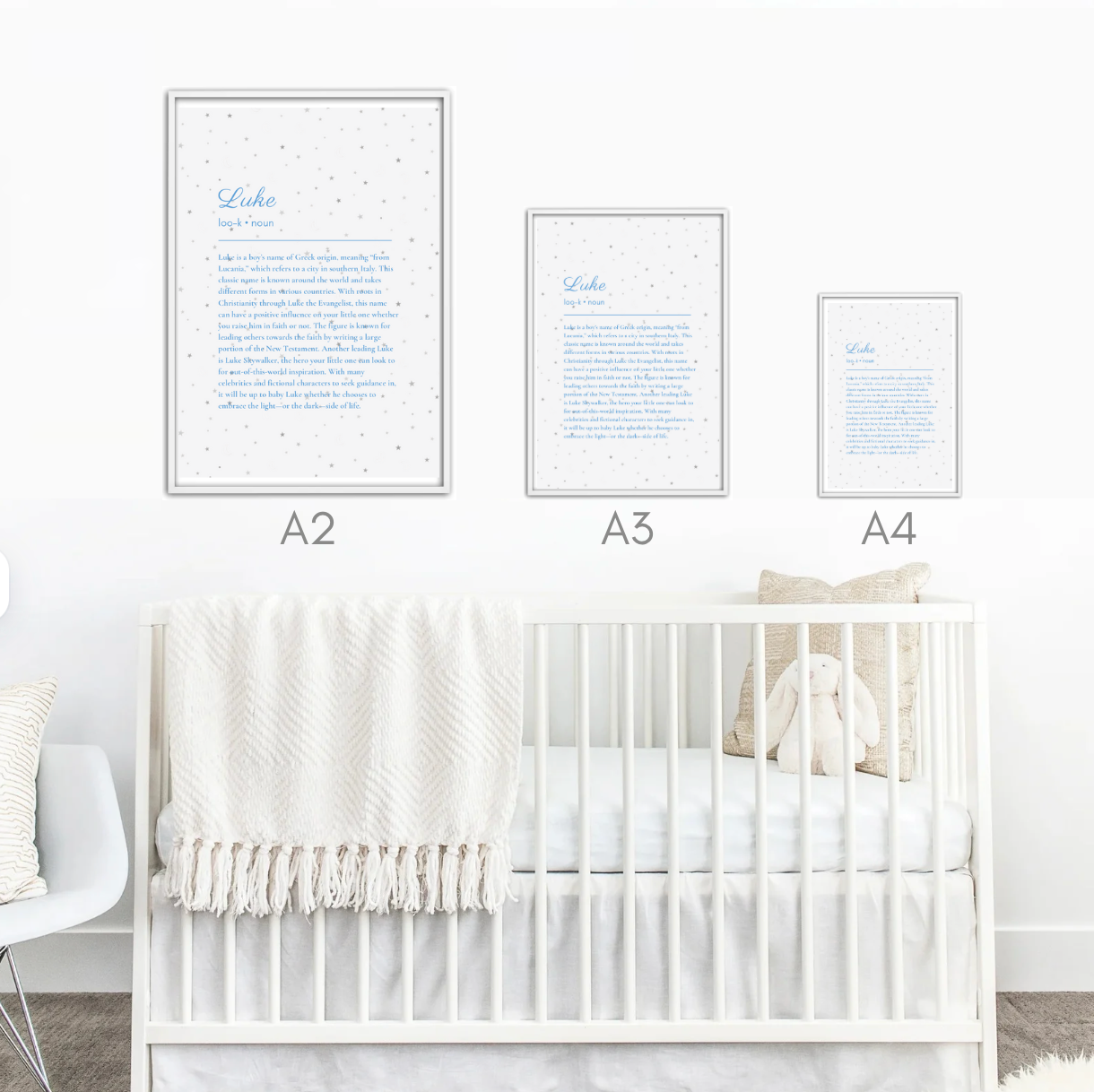 Featuring soft tones and a delicate star design, this print adds warmth and charm to any nursery or bedroom. Fully customisable with any name and definition, it’s the perfect personalised gift for new parents or a meaningful addition to your little one’s space.