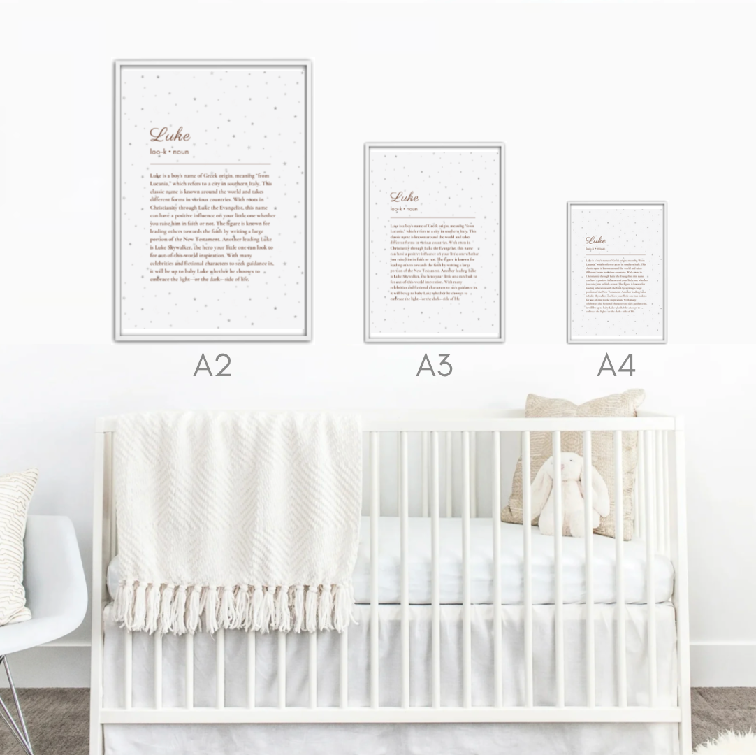 Featuring soft tones and a delicate star design, this print adds warmth and charm to any nursery or bedroom. Fully customisable with any name and definition, it’s the perfect personalised gift for new parents or a meaningful addition to your little one’s space.
