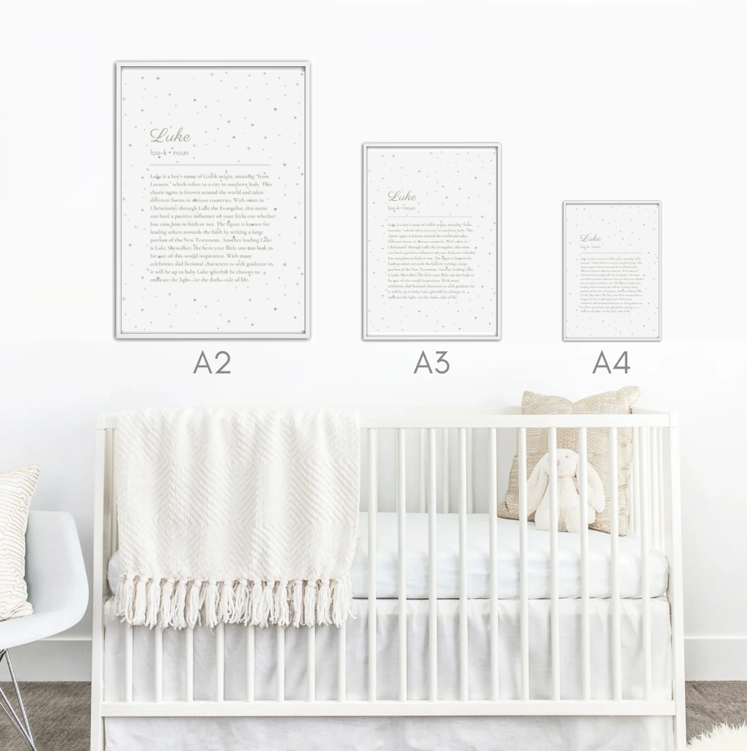 Featuring soft tones and a delicate star design, this print adds warmth and charm to any nursery or bedroom. Fully customisable with any name and definition, it’s the perfect personalised gift for new parents or a meaningful addition to your little one’s space.