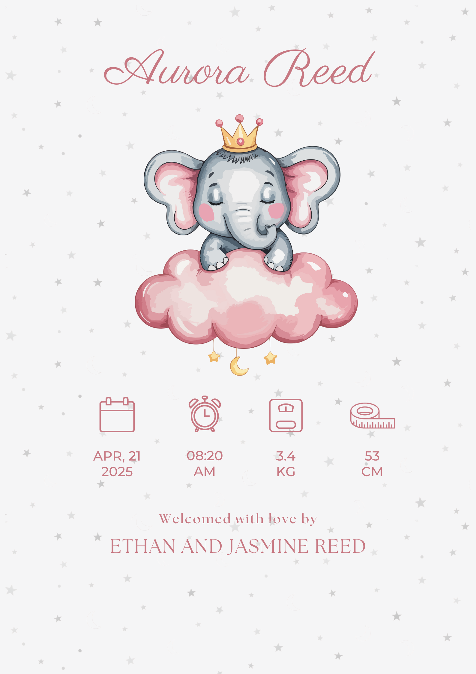 Each poster is fully customisable — personalise it with your baby’s name, birth date, time, weight, length, and parent names to create a one-of-a-kind memory that tells your family’s story. Whether printed for your own home or gifted to new parents, this artwork is a beautiful way to commemorate the moment your world changed forever.